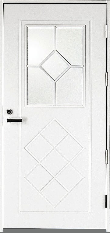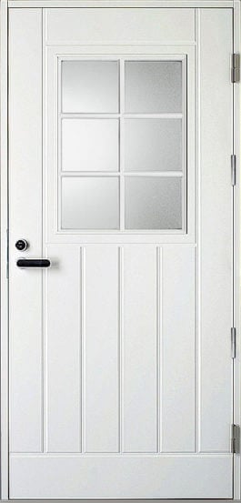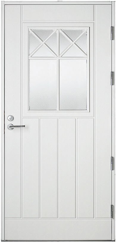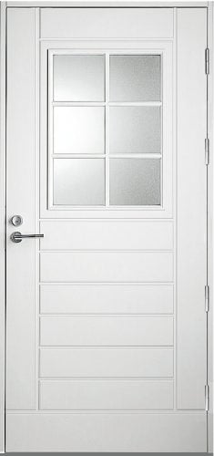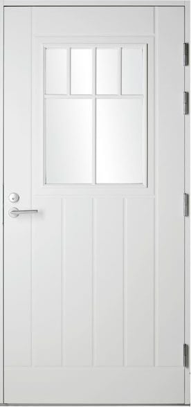 Glas: Crepi-glas, 3-glas isolerruta med argonfyllt energiglas. Spröjsmönstret infräst i glaset. Går även att få med utanpåliggande PVC-spröjs om man önskar byta glastyp.