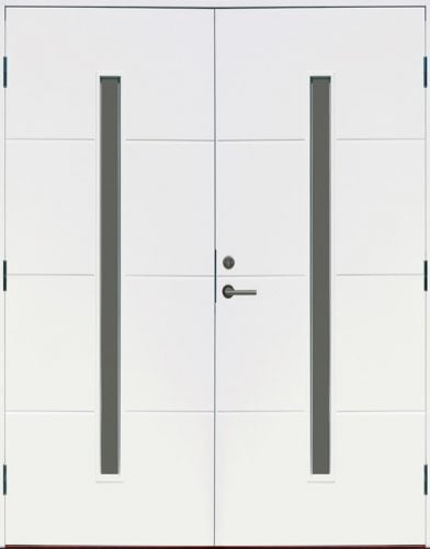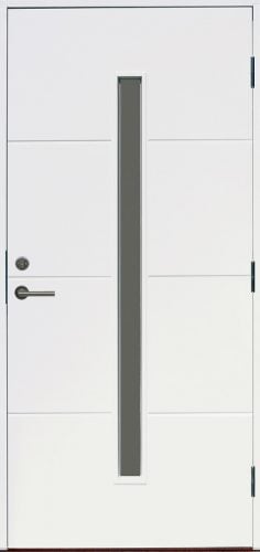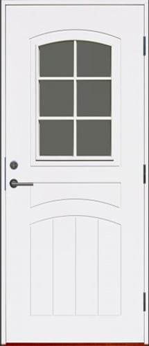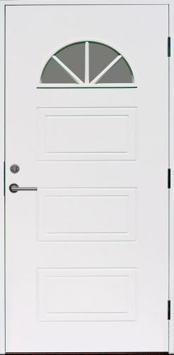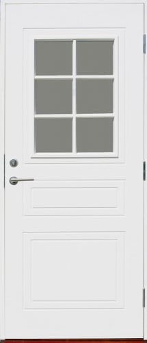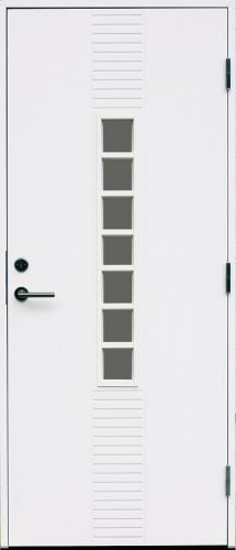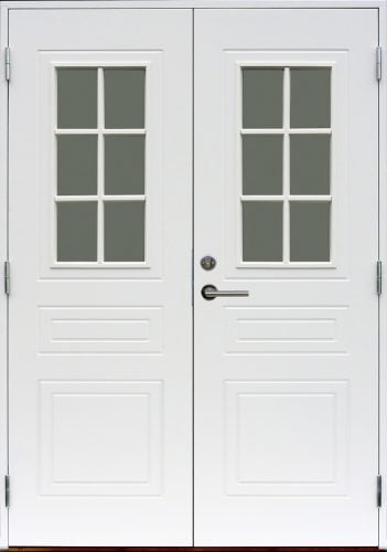Dörrblad: Ramverk av furu, dubbla 0,45 mm aluminiumplåtar och 3,2 mm HDF-board.