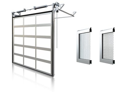 Portar med glaspaneler ger en modern design och maximalt utnyttjande av naturligt ljus. Fyllning i paneler med enkelt eller dubbelt glas ur slitstark plast, gör glaspanelerna väldigt effektiva och motståndskraftiga mot repor. Tillämpning av aluminium minskar vikten på portbladet med nästan hälften jämfört med en stålport.